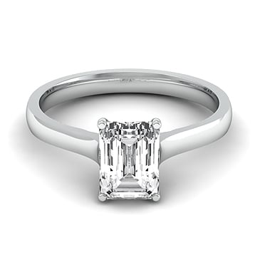 Une belle bague de fiançailles diamant solitaire taille émeraude fluide avec un réglage classique à quatre griffes qui glisse sous le diamant pour rejoindre une tige à profil plat. Cette conception contemporaine pour les tailles de pierre de 0,30 ct à 1,25 ct est disponible en or blanc, en or jaune, en platine et maintenant en palladium.