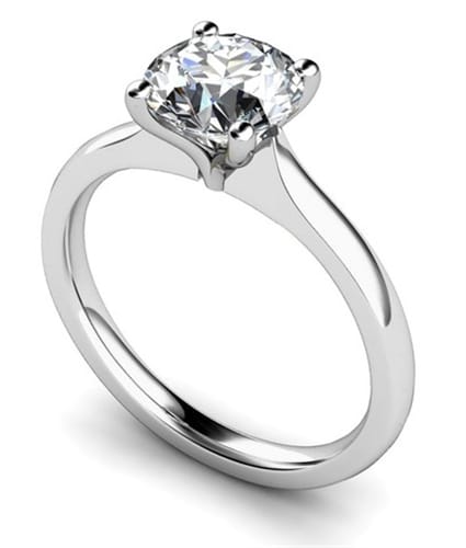 Cette bague en pierre unique a continué d’être un design extrêmement populaire auprès de nos clients. Un diamant de taille ronde se trouve dans un cadre à quatre griffes, avec des épaules effilées. Cette conception est simple mais frappante, attirant les clients encore et encore.