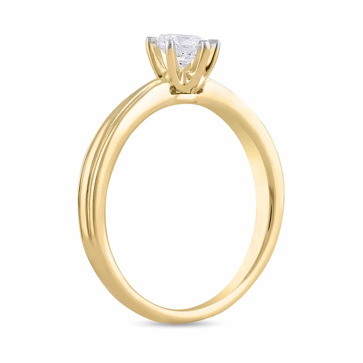 Élégant dans sa simplicité, ce solitaire étincelant en diamant de 0,33 carat est serti de griffes et repose sur un bracelet sophistiqué en or 18 carats avec des détails de rainures attrayants.