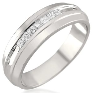 Dites «oui» avec une alliance en diamant aussi unique que votre amour. Confectionnée en or bicolore 14 carats, cette alliance pour homme de 8,0 mm de large présente un centre en or blanc satiné orné d’un 1/5 carat. diamant solitaire. Les bords en or rose donnent à la bague un aspect et une sensation contemporains et complètent ce design accrocheur. Un look qu’il chérira toute sa vie, cette bague est finie avec un brillant brillant.